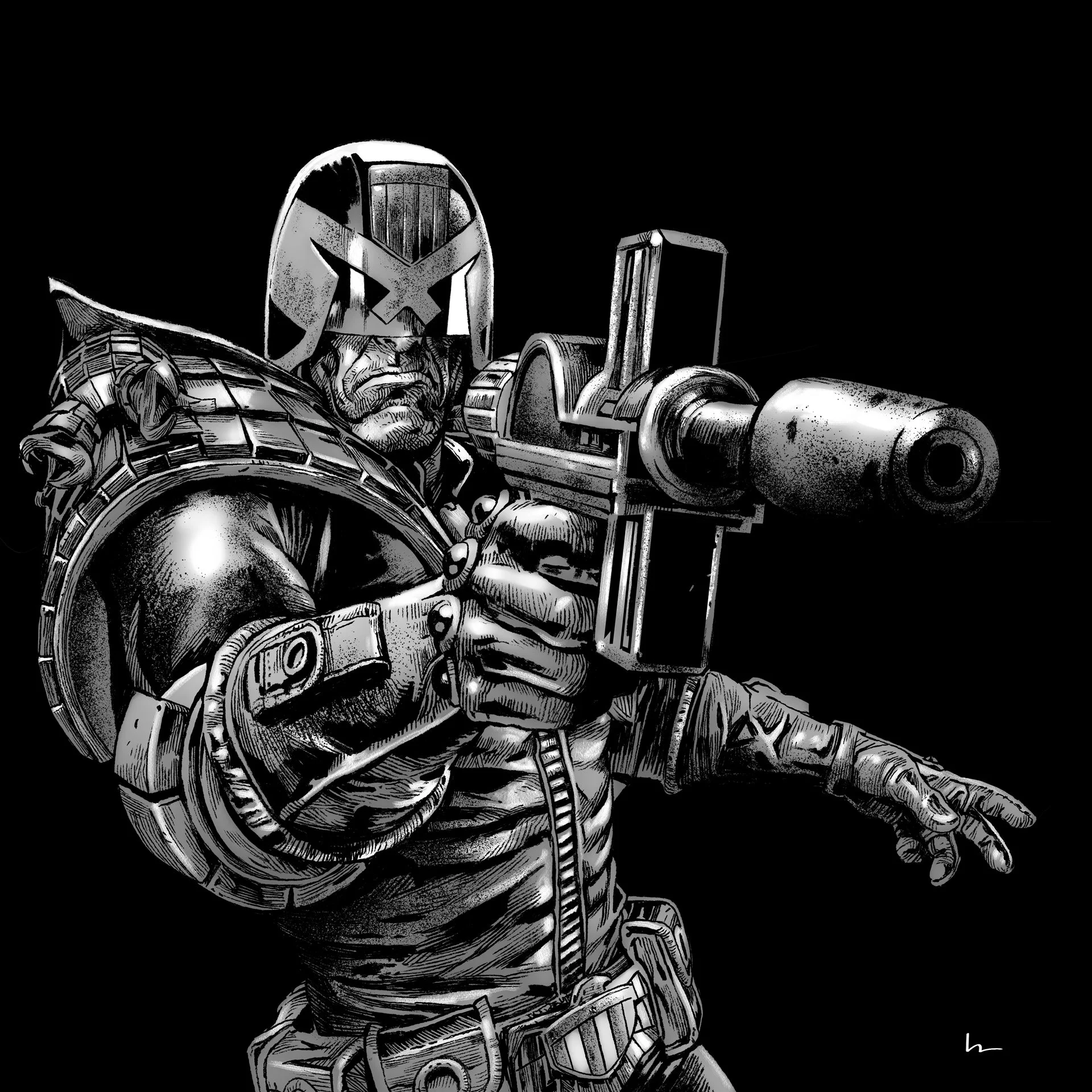 2000ADMatt Clark modelled Judge Dredd, as with all his sculpts it was perfect, I shamelessly used it for this draw over. Thanks Matt.